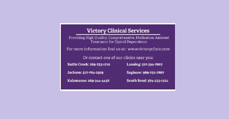 Victory Clinical Services is an accredited substance abuse treatment center that provides outpatient detoxification, for men and women from 18+ years of age. As part of their special programs, Victory Clinical Services treats clients with co-occurring mental and substance use disorders, criminal justice (other than dui/dwi)/forensic clients, and pregnant/postpartum women. To help patients achieve sobriety, Victory Clinical Services provides treats opioids detoxification and medication routinely used during detoxification.. Afterward, patients receive cognitive behavioral therapy, telemedicine/telehealth therapy, and substance use disorder counseling during treatment. Victory Clinical Services is located in Kalamazoo, Michigan, providing treatment for people in Kalamazoo County, accepting cash or self-payment, medicaid, and medicare.